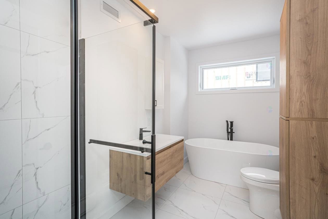 - Salle de bain à l’étage avec douche italienne et bain autoportant
